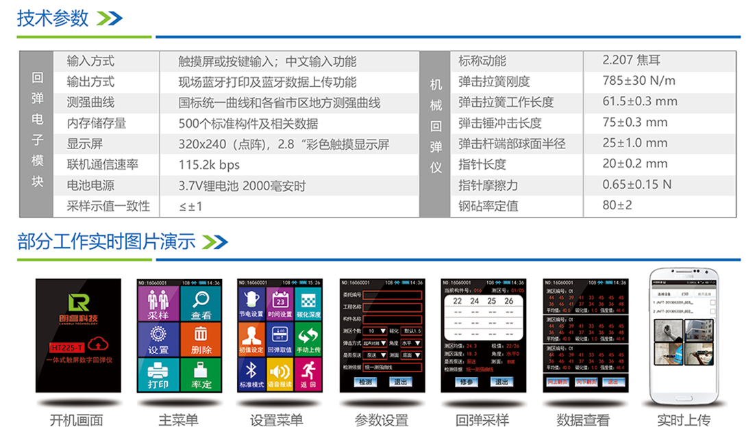 云回彈功能:配合朗睿科技手機APP軟件可以實現(xiàn)回彈數(shù)據(jù)現(xiàn)場實時上傳。