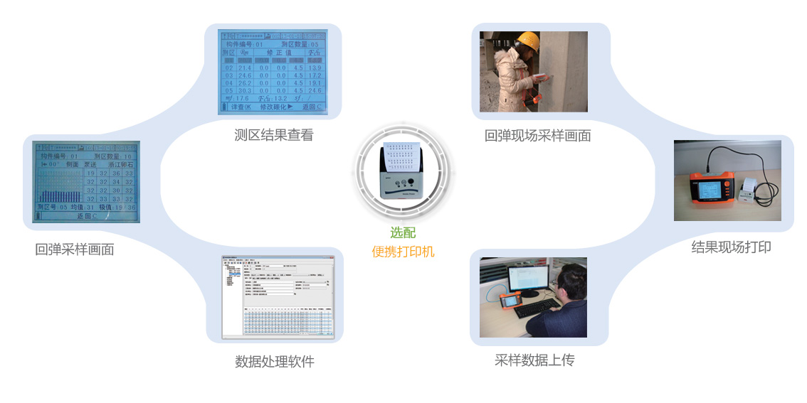 ?、葸x配便攜式打印機(jī)可以隨時(shí)進(jìn)行原始回彈值、測(cè)區(qū)或構(gòu)件強(qiáng)度值的打印。特別適合現(xiàn)場(chǎng)會(huì)議、政府部門組織的工程質(zhì)量檢測(cè),各職權(quán)部門進(jìn)行的監(jiān)督抽查等。