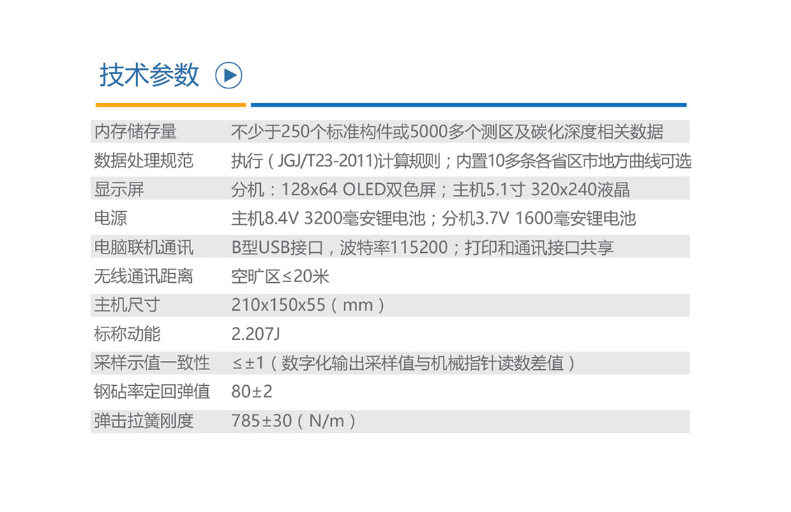 ③回彈儀機(jī)械刻度示值、分機(jī)OLED屏與主機(jī)大液晶屏幕可以實(shí)時(shí)對(duì)比觀測(cè),方便了使用和避免出現(xiàn)誤差。