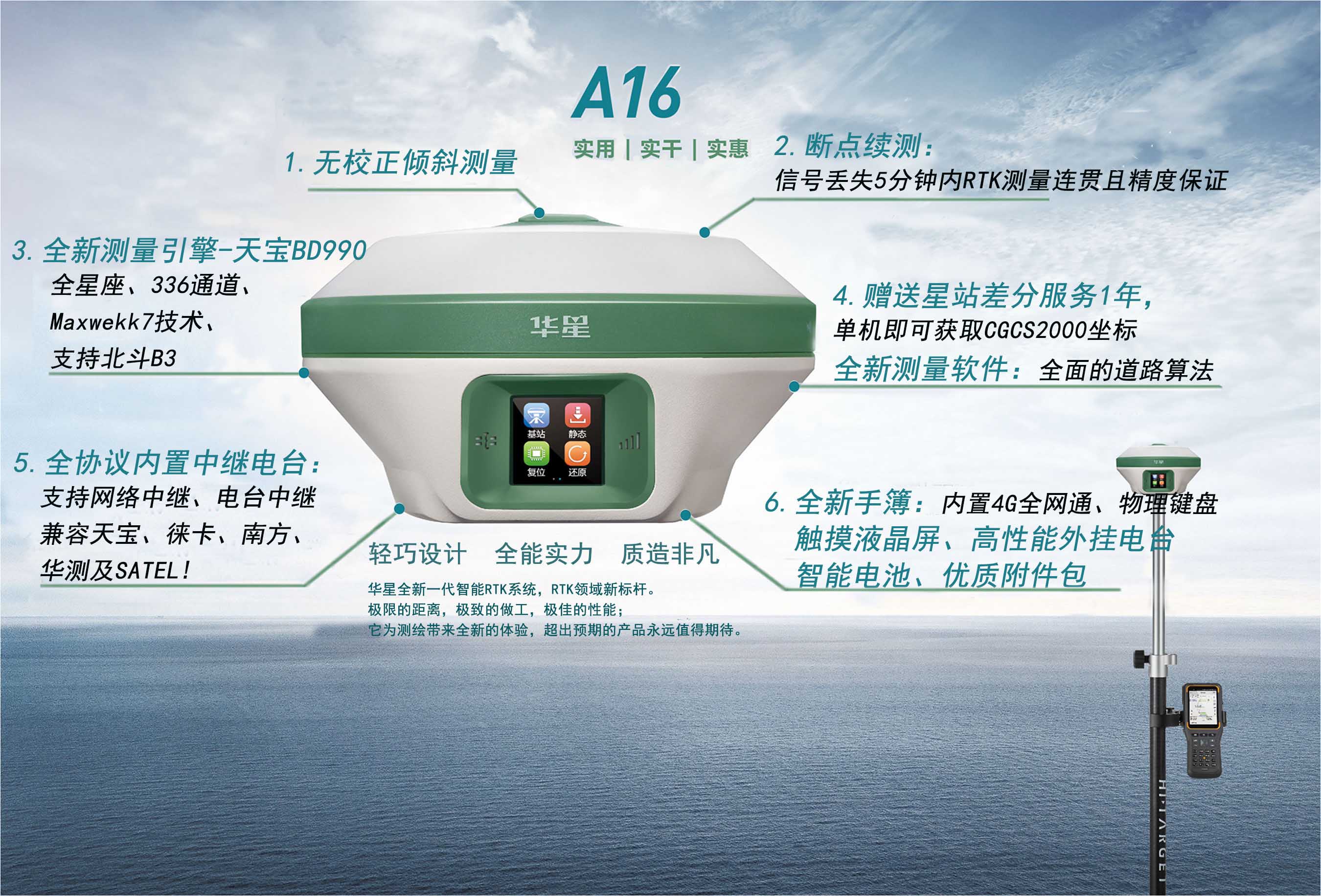 平面精度:±0.25m+1ppm ;高程精度:±0.50m+1ppm |